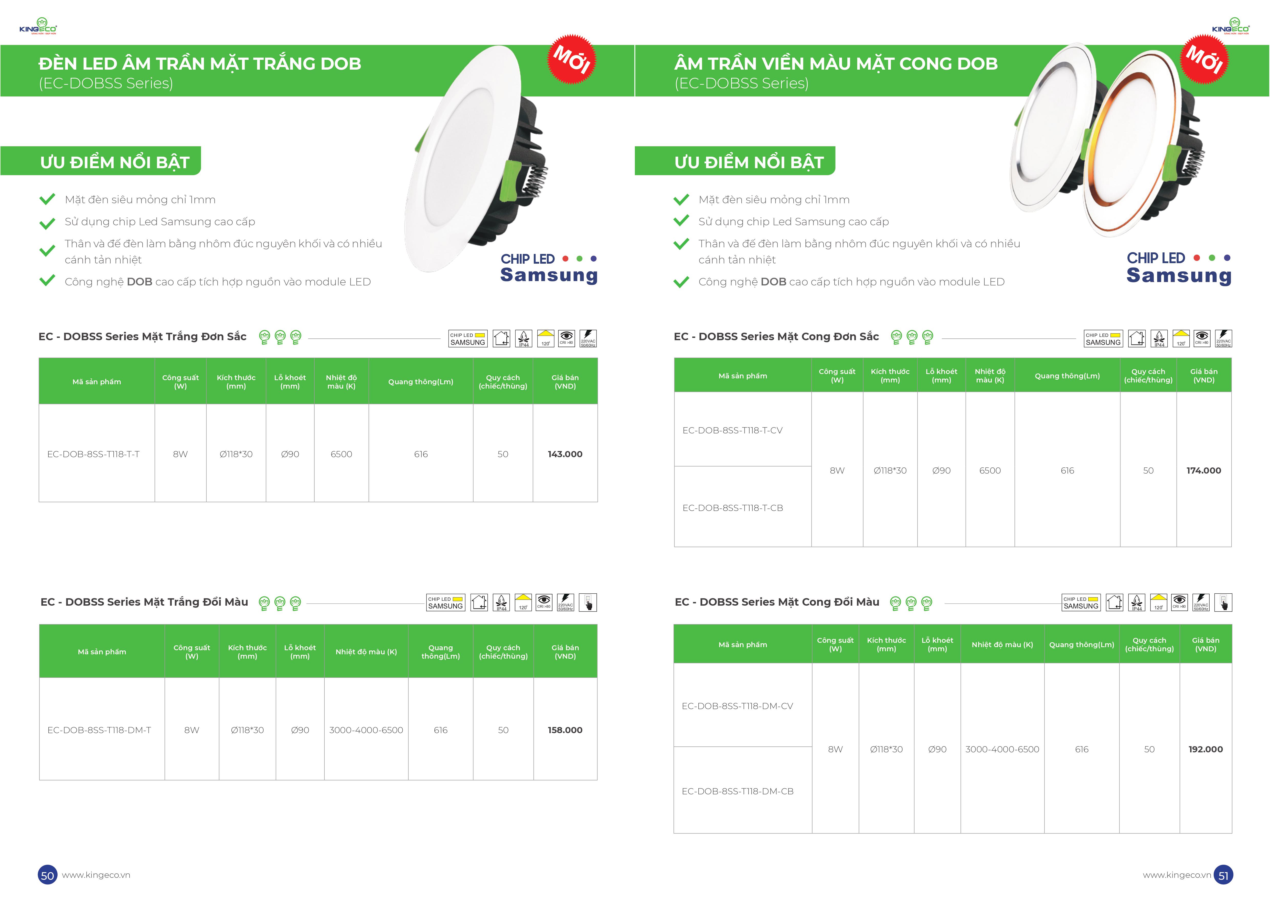- Đèn LED âm trần EC-DOB-8SS-T118-DM-CB Đổi màu KingEco tuổi thọ 50.000h chiếu sáng, gấp 10 lần so với bóng Huỳnh quang, compact, giúp tiết kiệm 60% điện năng tiêu thụ