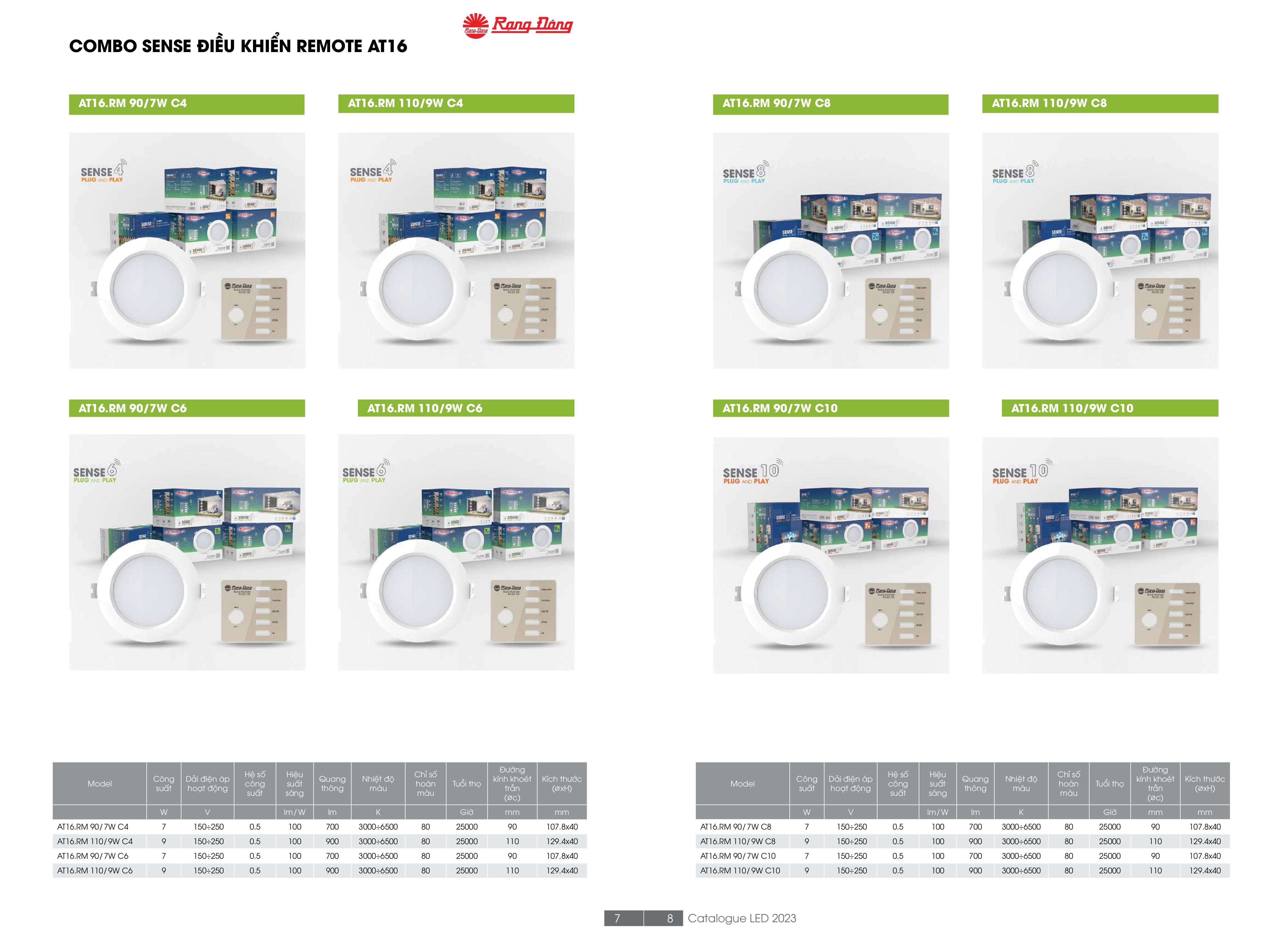 - AT16.RM 90/7W C4 gồm 4 LED âm trần có thể điều chỉnh cường độ sáng từ 10-100%, và thay đổi màu ánh sáng từ 3000K – 6500K. Ngoài ra, trên remote được tích hợp sẵn các kịch bản chiếu sáng khác nhau, phù hợp với đa dạng nhu cầu của khách hàng.