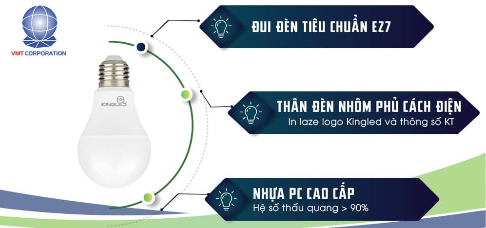 - Sản phẩm bóng đèn led đui xoáy E27 - LED BULB LB-15-A3 KingLED với thiết kế đui đèn E27 tiêu chuẩn, phổ thông, được dùng phổ biến rộng rãi trong dân dụng, trang trí nhà hàng, khách sạn, showroom, chiếu sáng nội thất...
