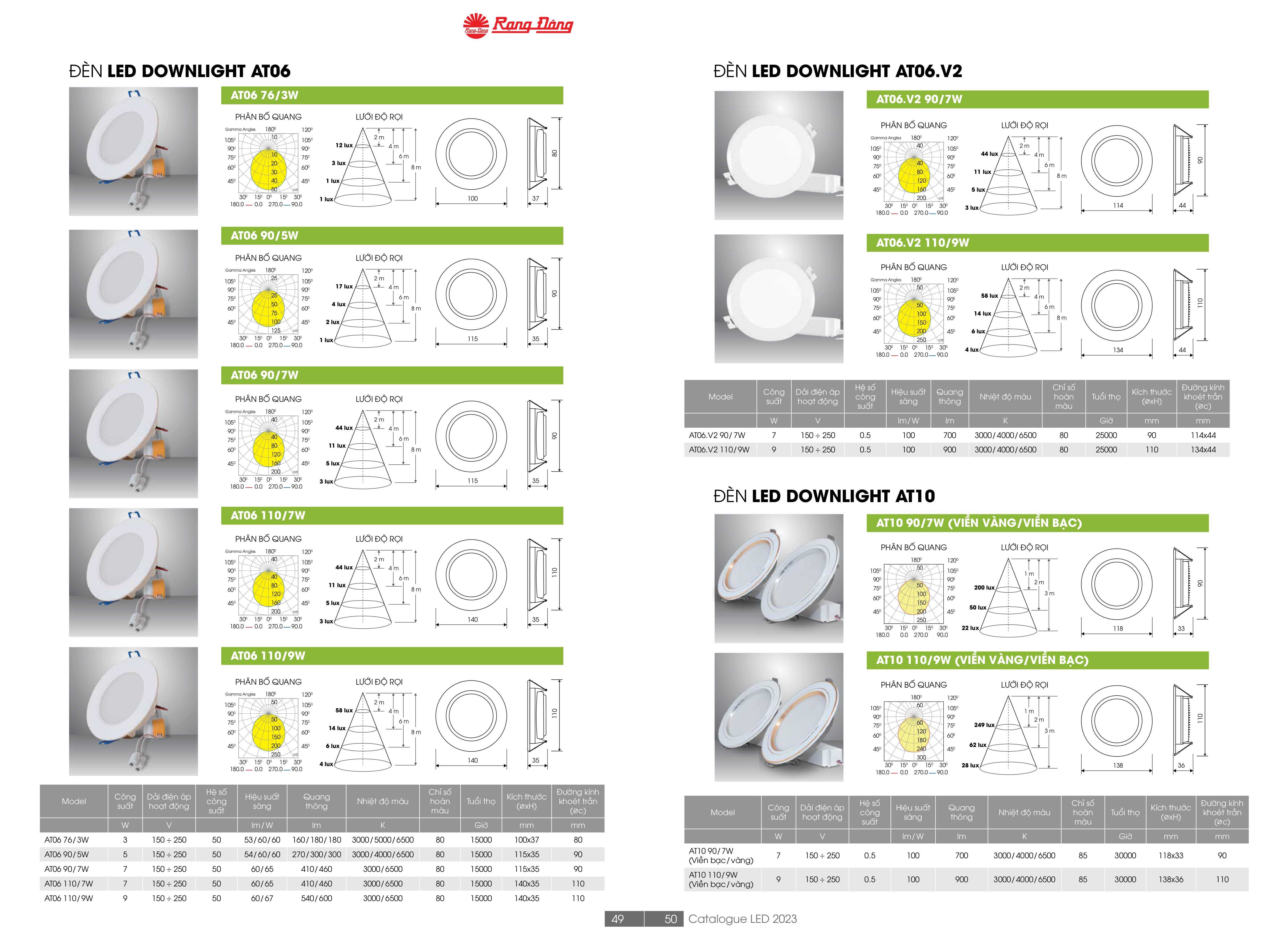 - Đèn led âm trần AT10 110/9W Rạng Đông có lỗ khoét 110mm với chiều dày 36mm. Thân đèn làm từ nhôm thuần chắc chắn, được phủ lớp sơn nano cho màu sắc tương đồng với màu sắc hệ trần thạch cao, trần nhôm.