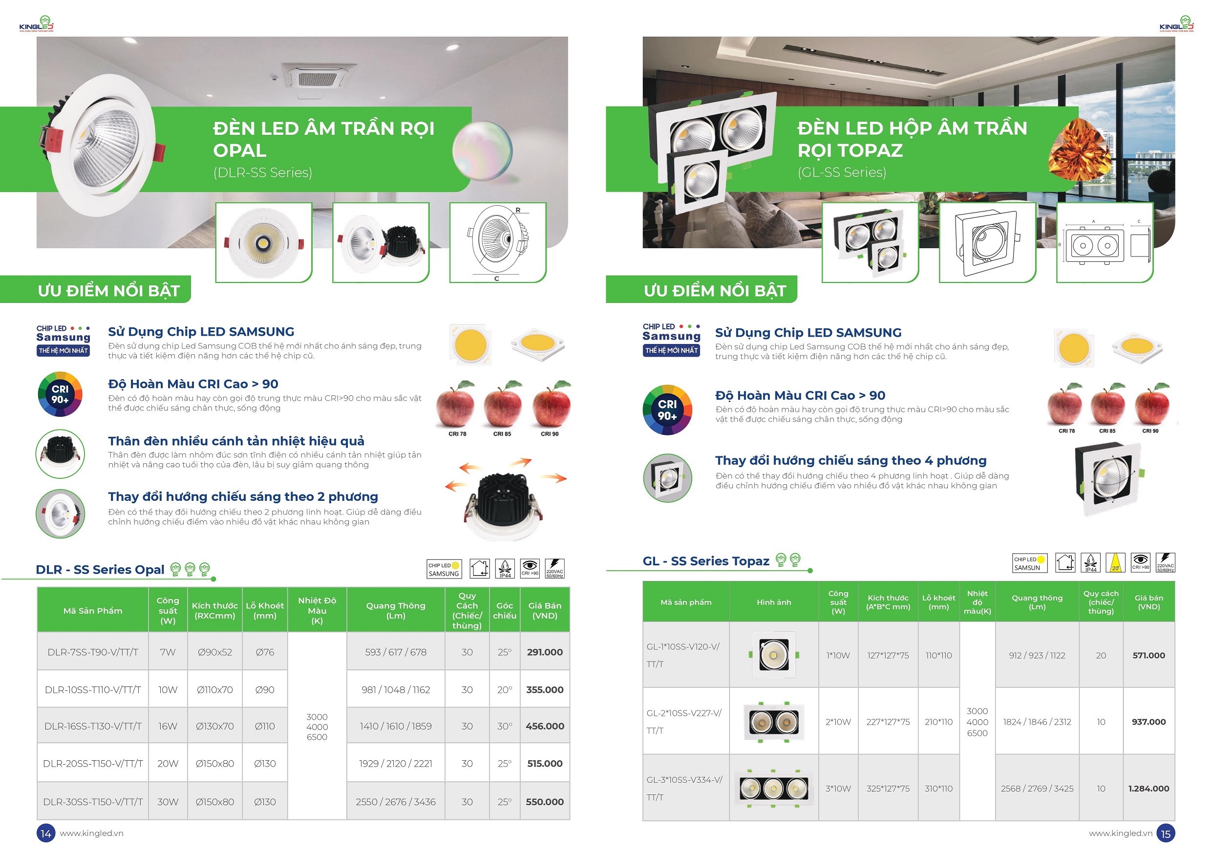 - Đèn led âm trần rọi OPAL DLR-16SS-T130 Kingled ánh sáng Đèn âm trần rọi (Spot downlight) có khả năng giúp bảo vệ mắt người dùng nhờ ứng dụng công nghệ LED, không phát ra các tia tử ngoại, tia UV gây hại.