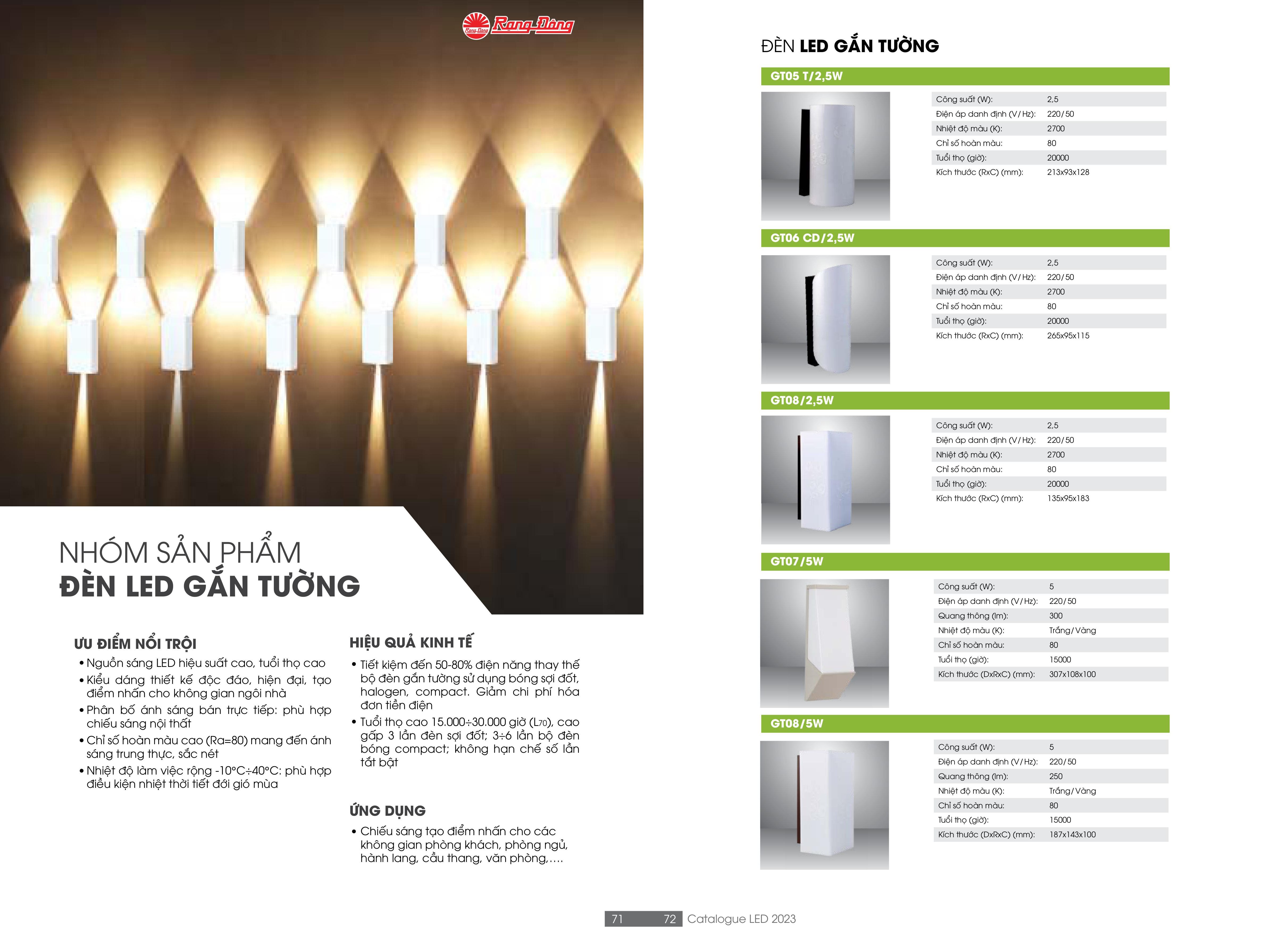 - Dèn LED gắn tường GT05 T/2.5W Rạng Đông là dòng đèn trang trí nội thất, được gắn cố định và ốp nổi trên bề mặt tường nhà làm điểm nhấn nổi bật cho không gian lắp đặt.