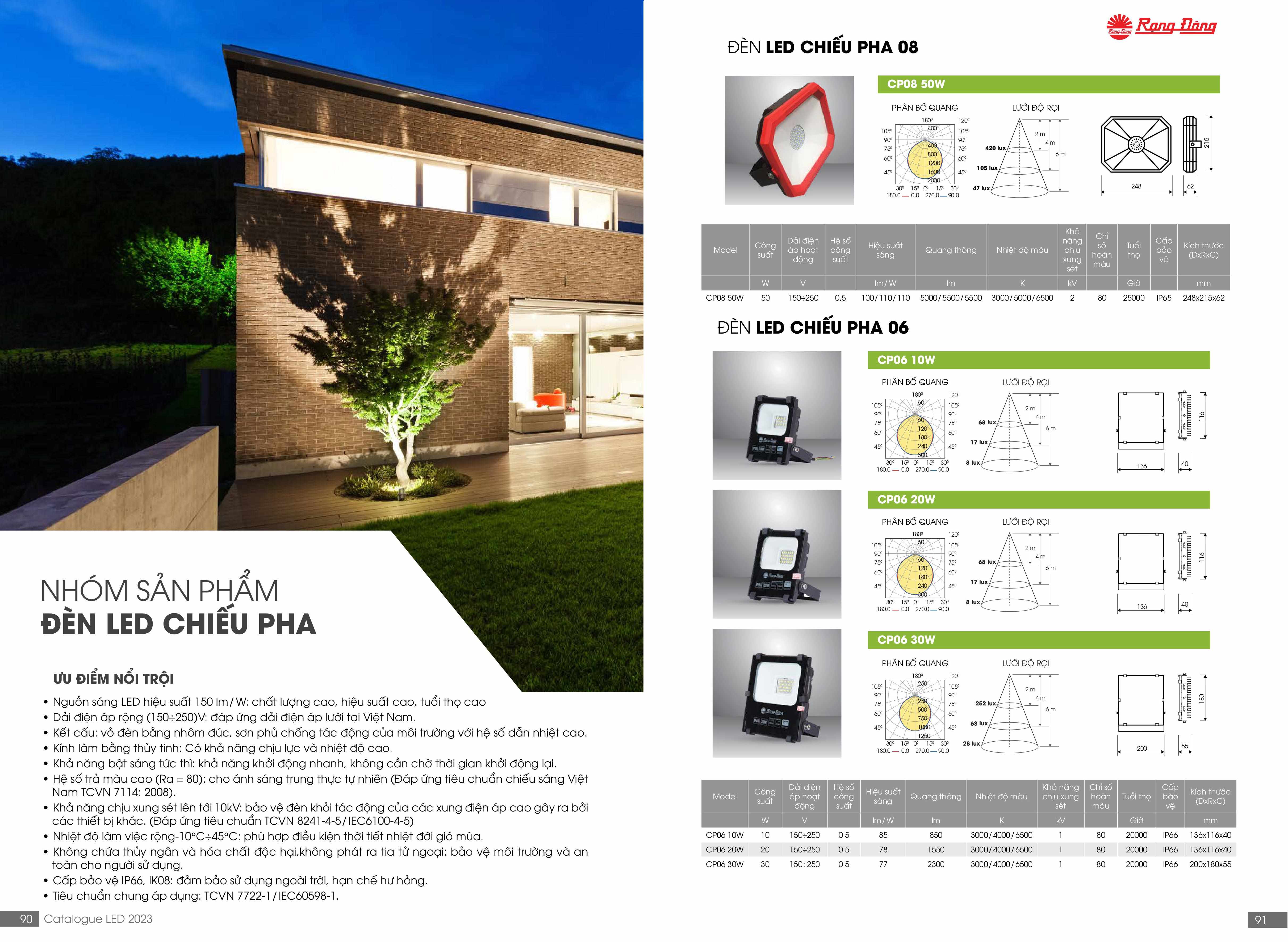 - Đèn pha LED CP06L 10W Rạng Đông có độ kín khít cao: IP66 , khả năng chống xung sét 2kV giúp đèn hoạt động ổn định môi trường ngoài trời.