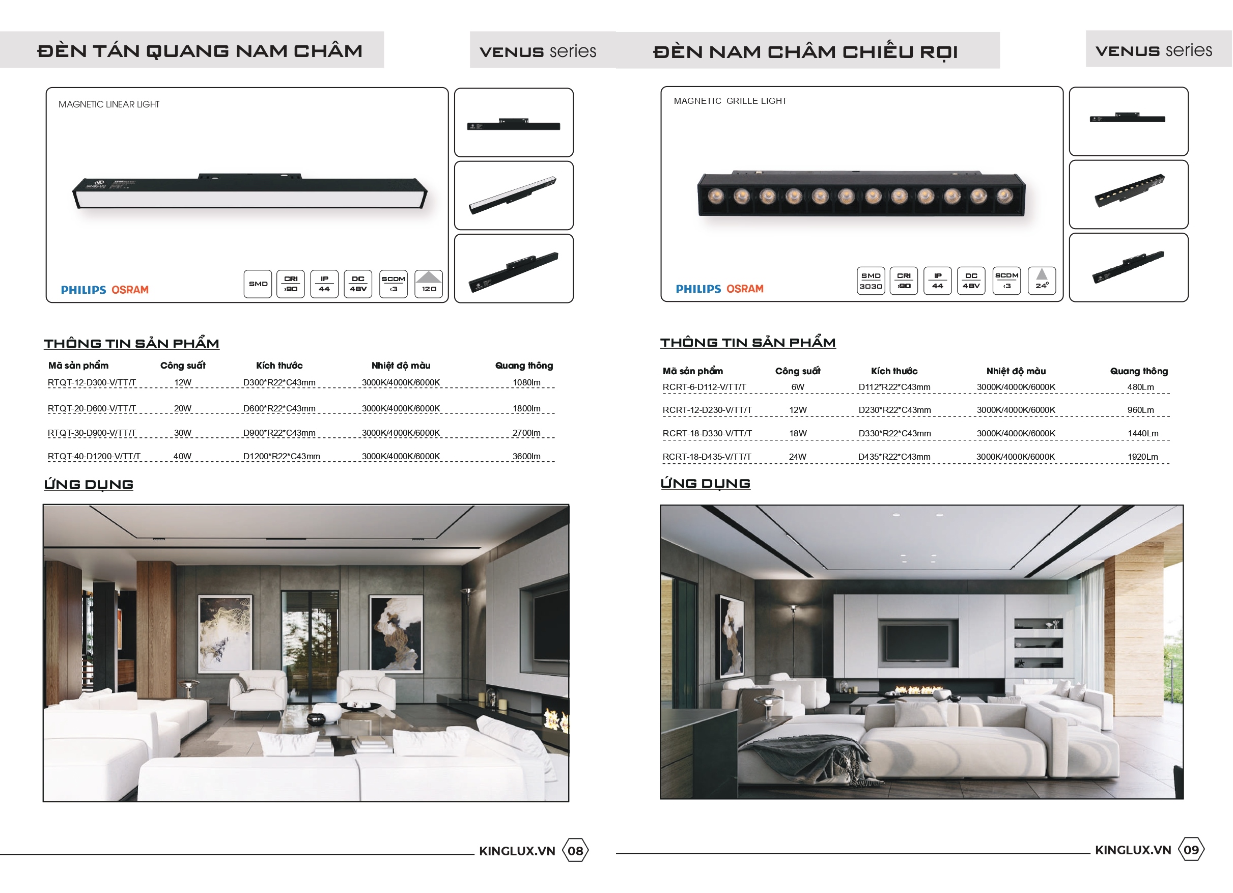 - Đèn ray nam châm tán quang chiếu thẳng RTQT-12-D300 12W KingLUX thuộc Series đèn tán quang chiếu thẳng Venus với các sản phẩm tương tự là đèn RTQT-20-D600 20W, đèn RTQT-30-D900 30W và đèn RTQT-40-D1200 40W.